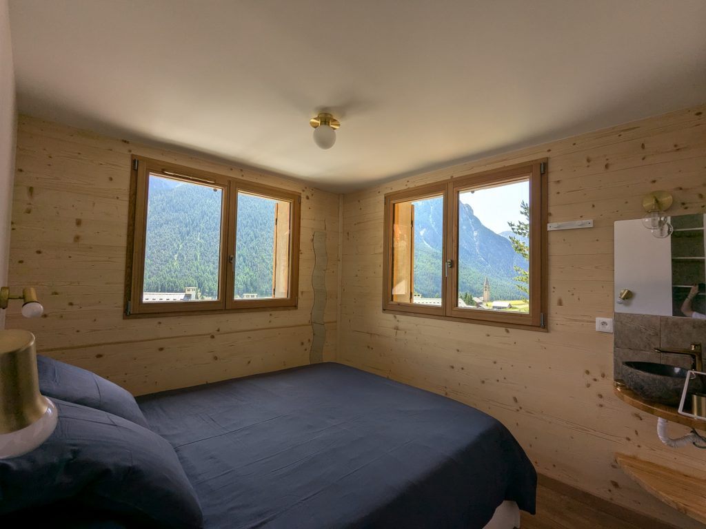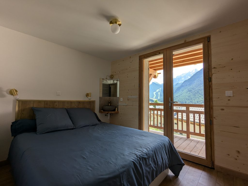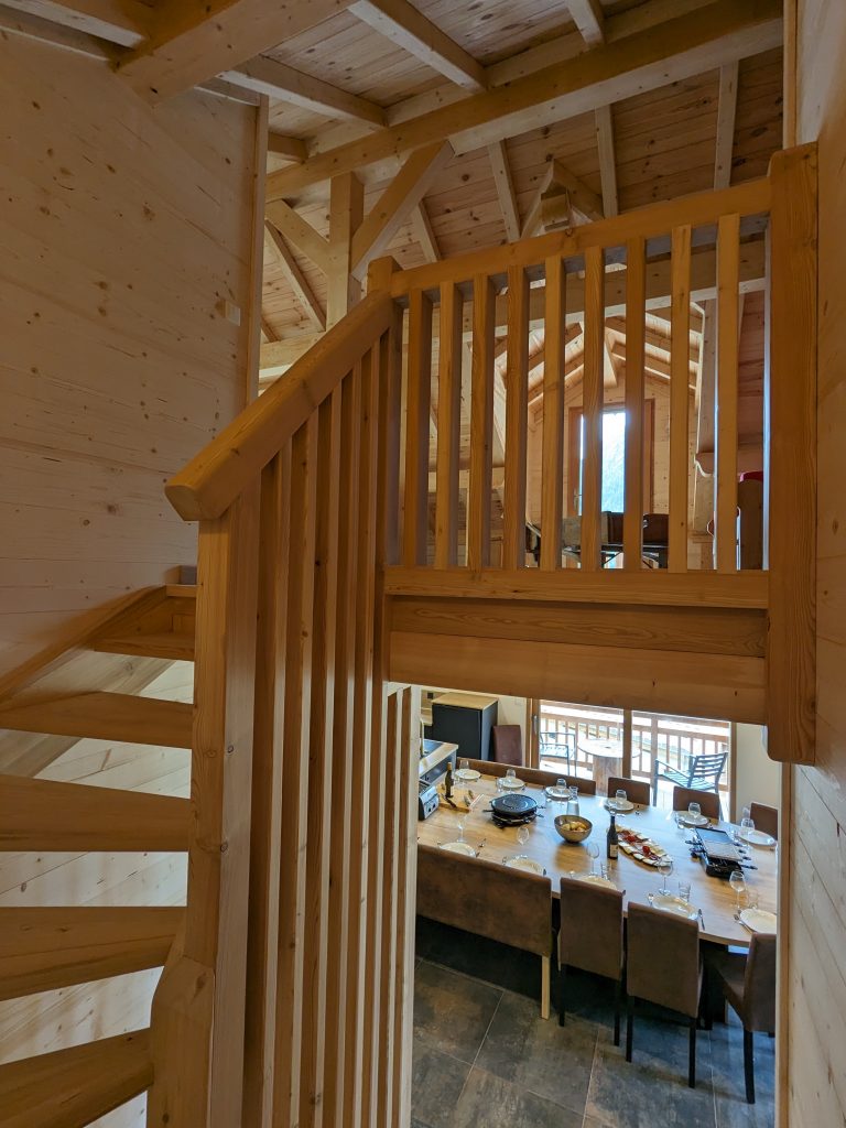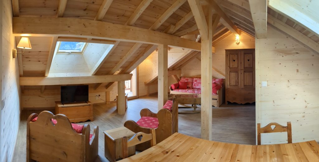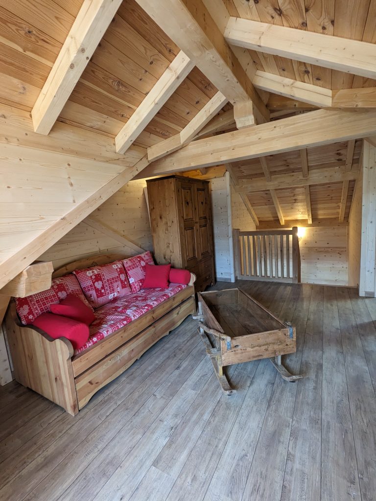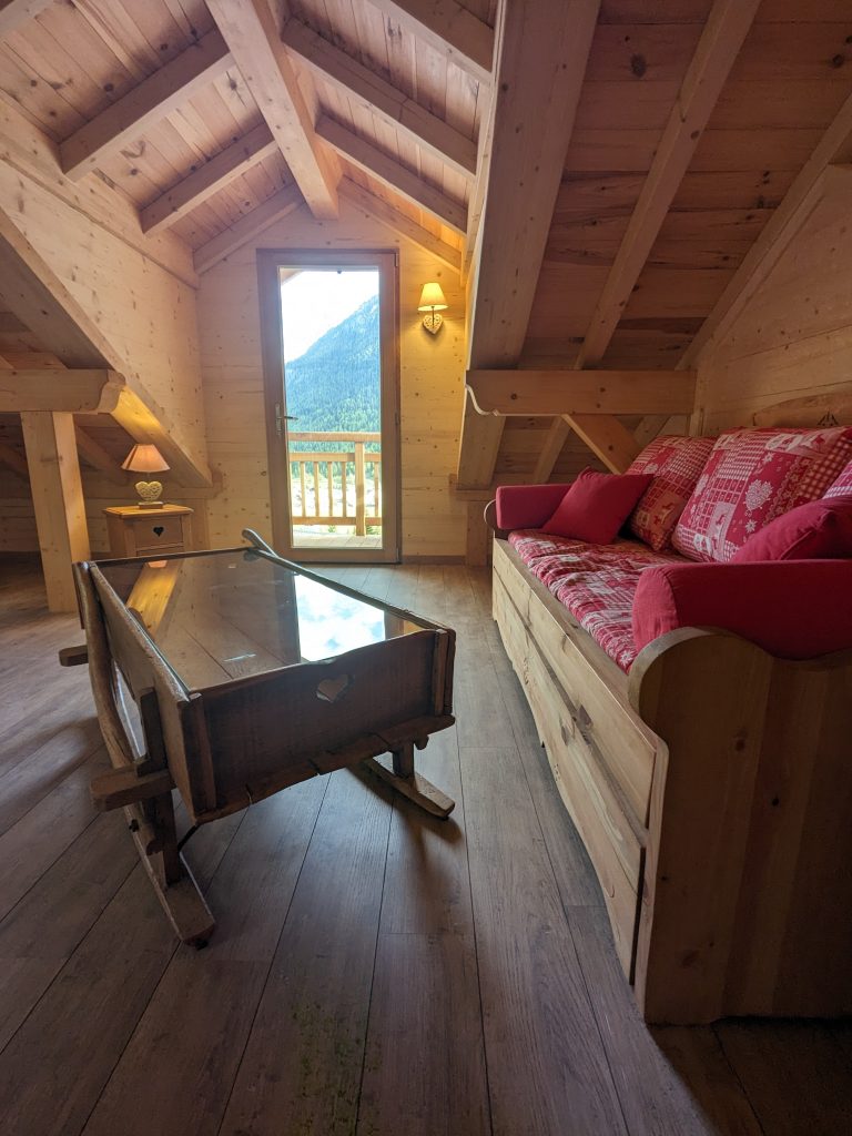 3ème étage : Grande mezzanine, espace bureau et canapé. Donne sur un balcon et la meilleure vue de Ceillac !