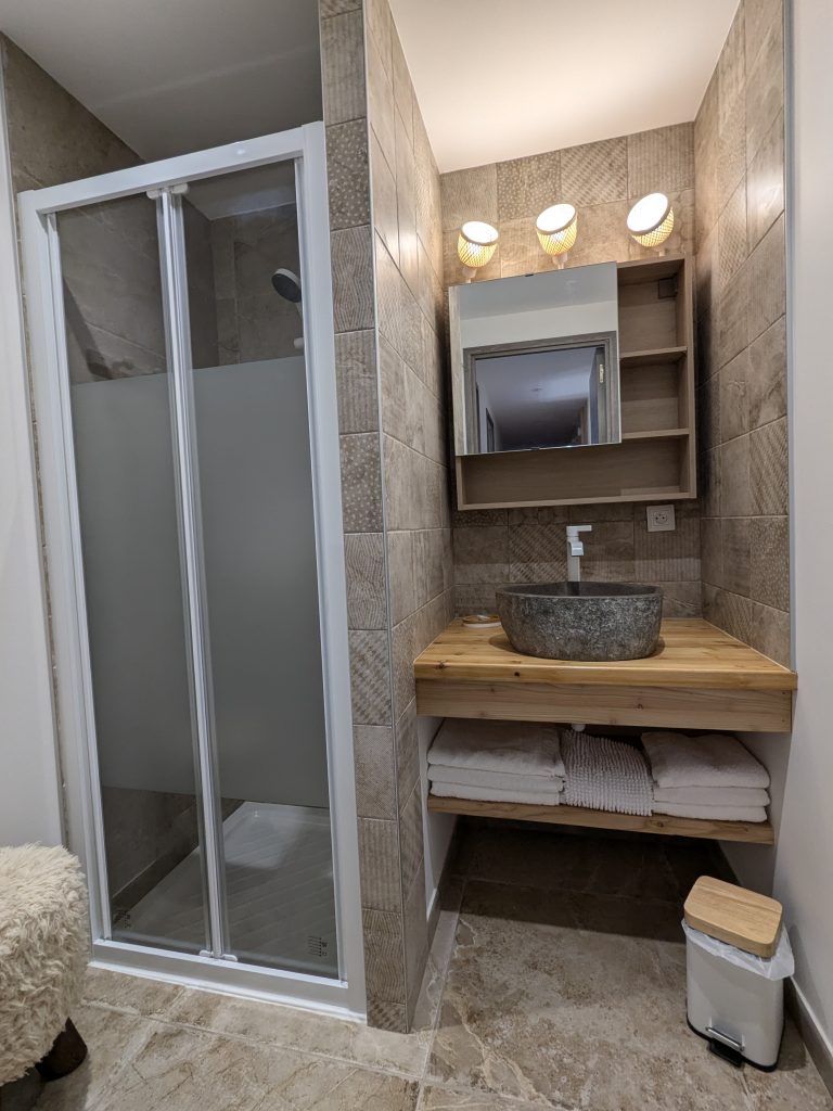 1er étage : Une chambre lit 140, une chambre lit 160, une chambre lit 160 avec balcon, une chambre dortoir 3 lits superposés, soit 6 lits simples. une salle de bain, une salle d’eau avec WC, un WC indépendant.