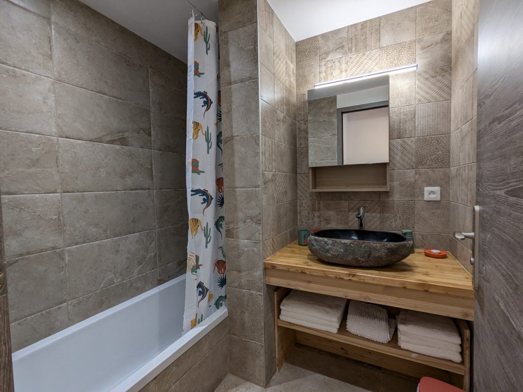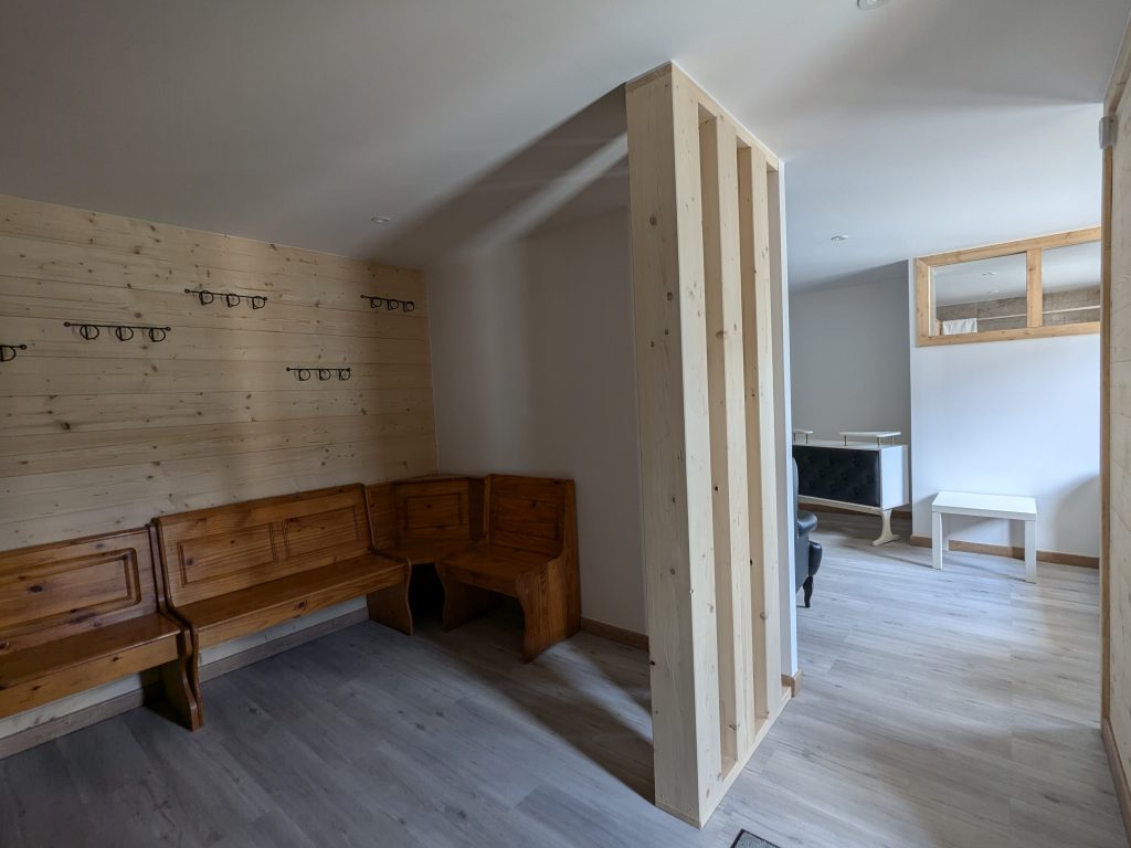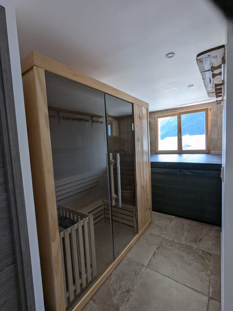 RDC : Ski room, salle de jeux et espace relaxation avec sauna, jacuzzi 4 places, douche et wc indépendants.