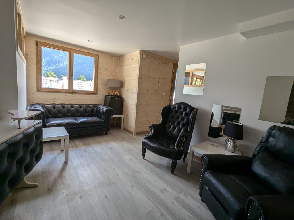 Côté équipements, tout y est : salle de relaxation avec jacuzzi et sauna, petit jardin avec chaises longues, terrasse suspendue, ski room, baignoire, cuisine toute équipée et espace bureau en mezzanine. Avec ses 200m² pouvant accueillir jusqu’à 15 personnes, chacun y trouve sa place!